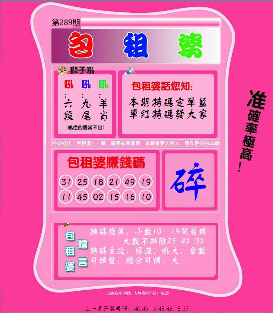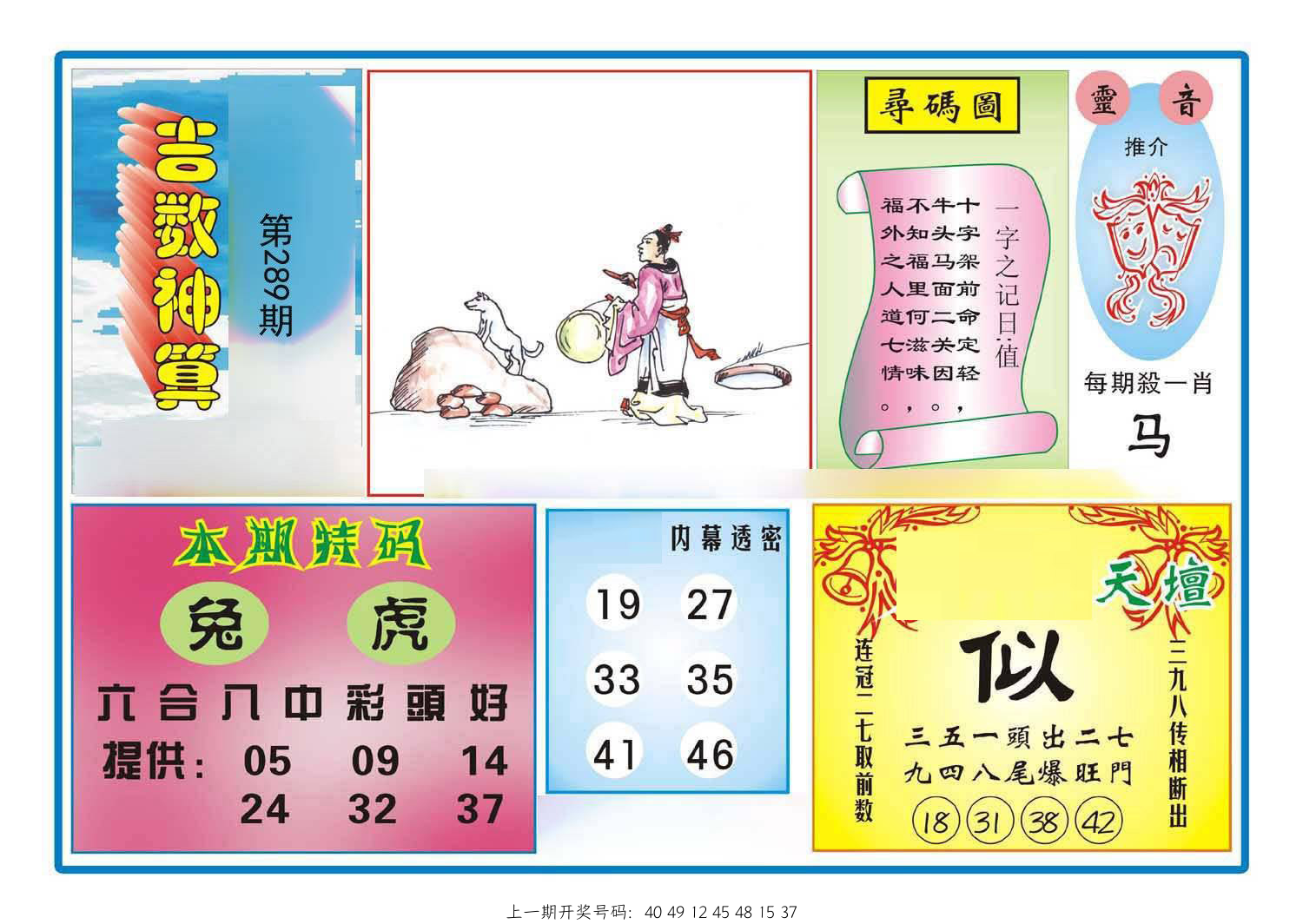 289期:五肖 |