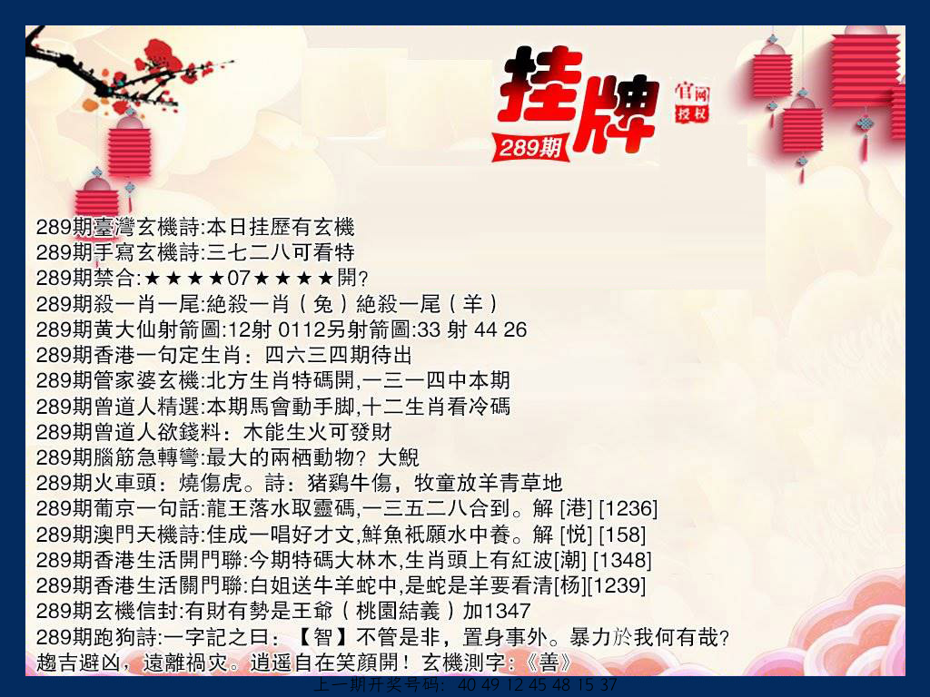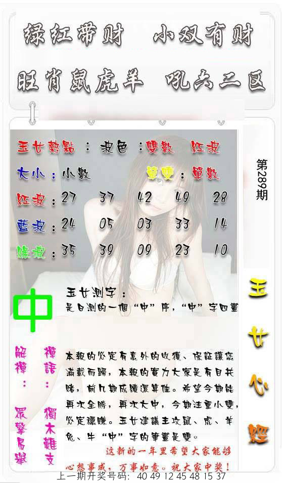 289期吉凶报肖【吉美】开????? |