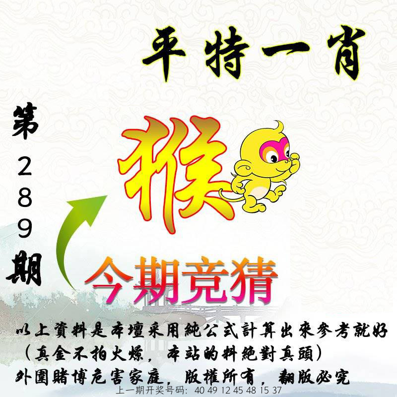 283期:平特一肖〖猴猴猴〗开:22猴对 | |