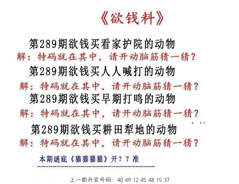 289期:一肖 |
